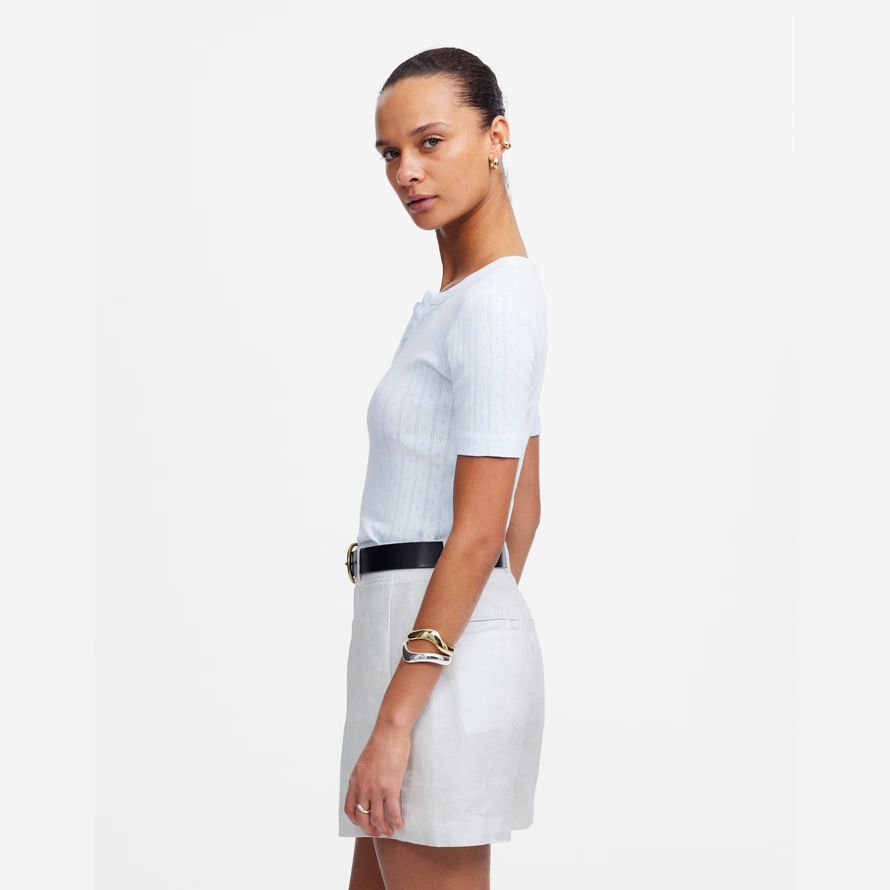 pantalons de style shorts ont une pintucked face, oblique poches avant et dos poches passepoilées. Conçu à partir de notre favori léger 100% lin, jeter ces sur avec un crisp chemise pour un look intemporel.