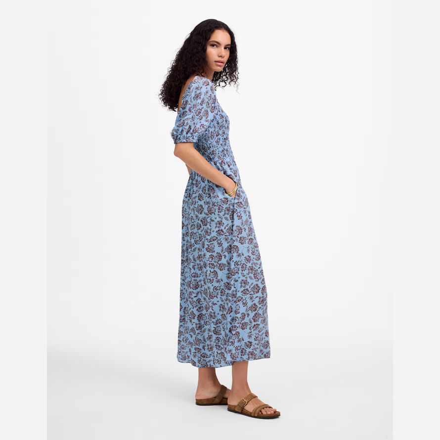 Ce floral-print midi robe combine un smockée corsage avec un…