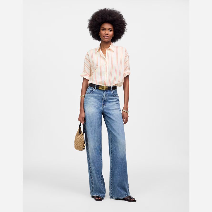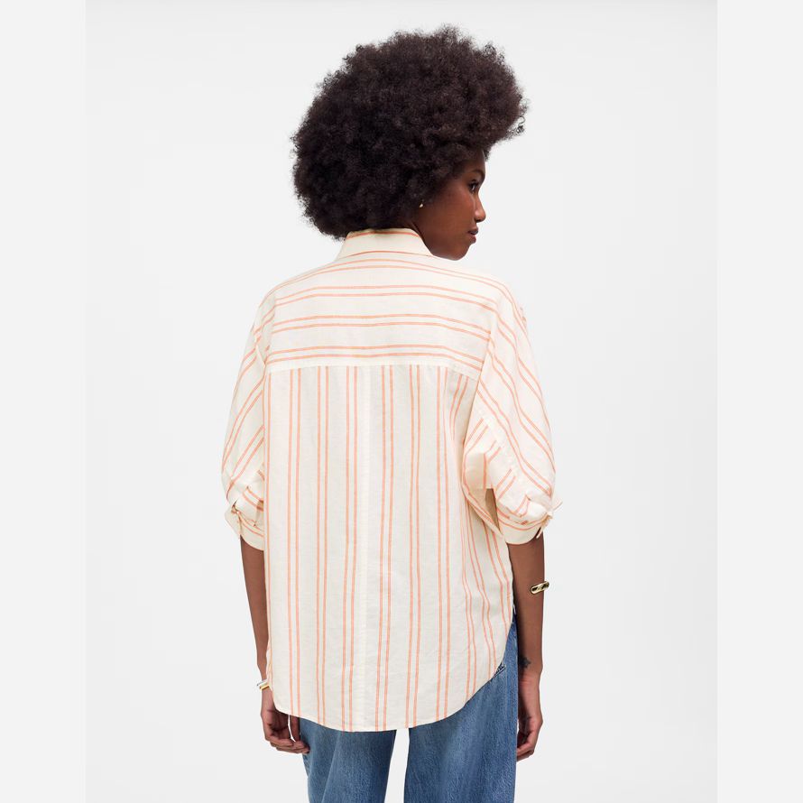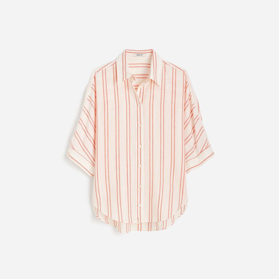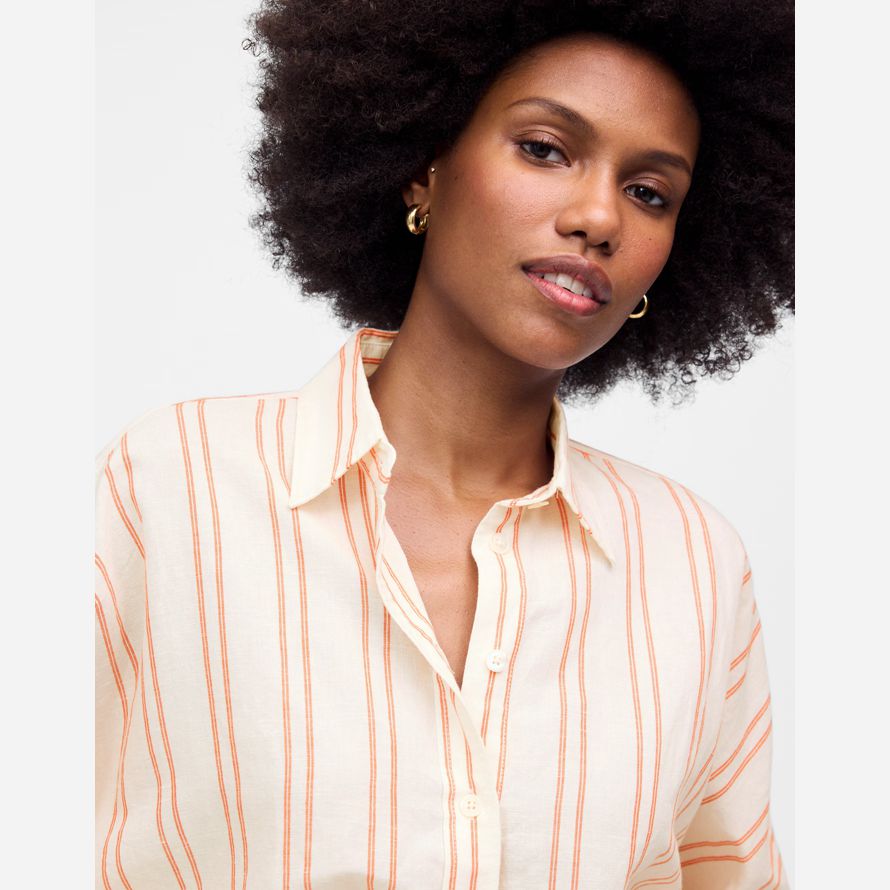 ce bouton-up rayures chemise est votre nouveau go-to pour une élévation encore look décontracté. Conçu à partir d’un linge en coton mélangé, il a un léger, de texture, de sentir et d’une atmosphère détendue, d’un grand ajustement.