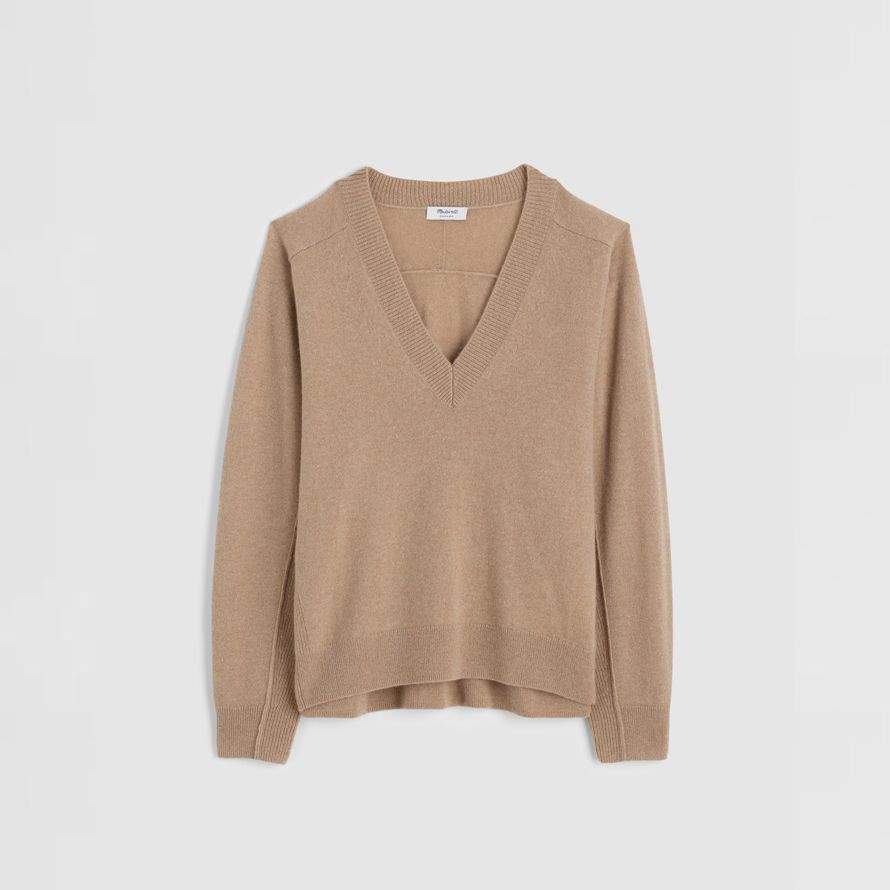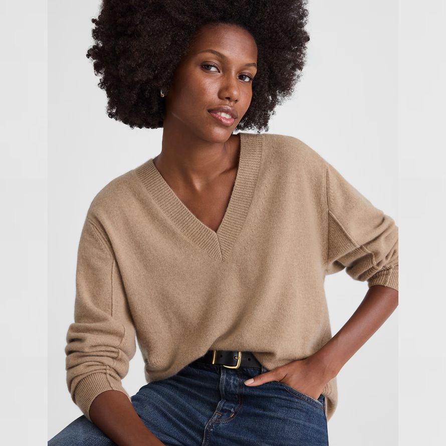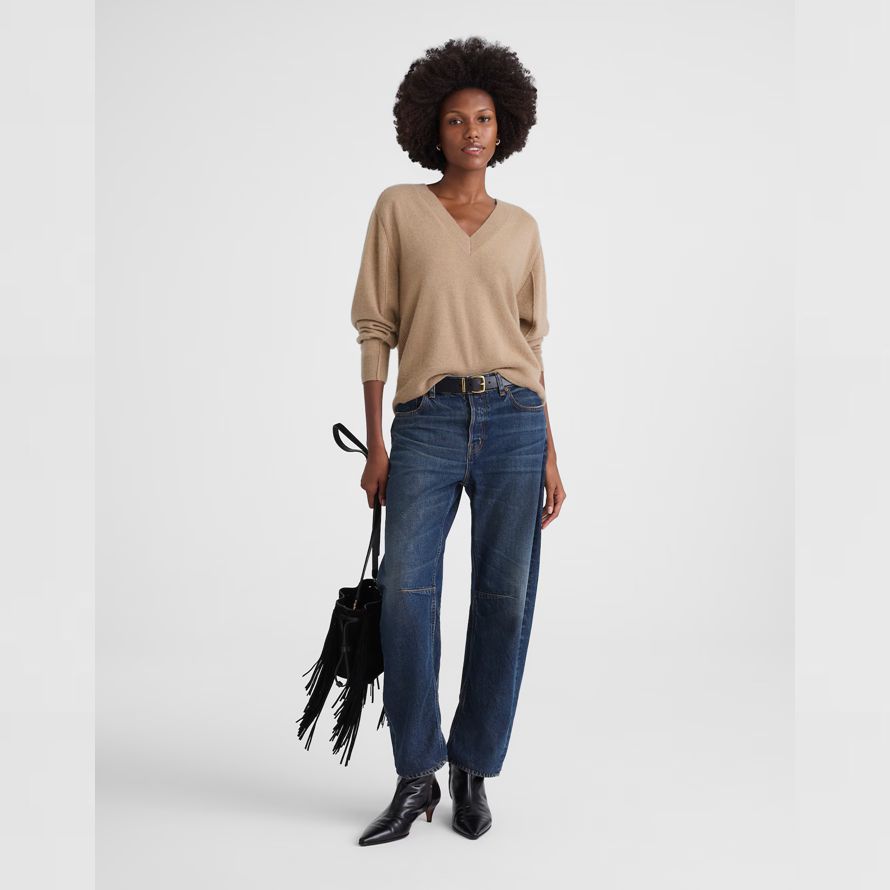 Un confortable, rayé, col en V pull faite de luxe (et de source responsable) 100% cachemire. Sa coupe décontractée et lâcha les épaules de faire de cette couche parfait pour les jours froids à venir.