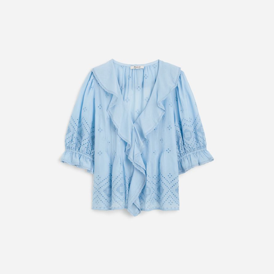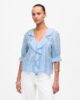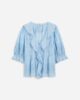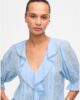 ruffle manches fonctionnalités haut de délicates nervures séparées et de la dentelle de rognage. Parfait pour habiller vos jeans préférés, il ajoute une touche d’effort de charme à votre look quotidien.