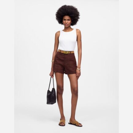 Chocolat Madewell Plissée En Lin Mini Jupe Femmes
