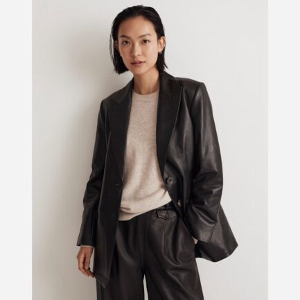 Black Womens Madewell Le Bedford Surdimensionné Cuir Blazer