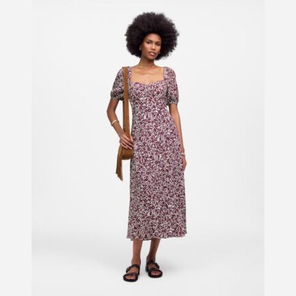 Rouge Foncé / White Womens Madewell Puff Manches Chérie Robe Midi