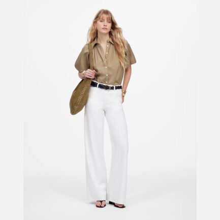 White Womens Madewell Surdimensionné Plissée À Manches Bouton-Up Maillots De